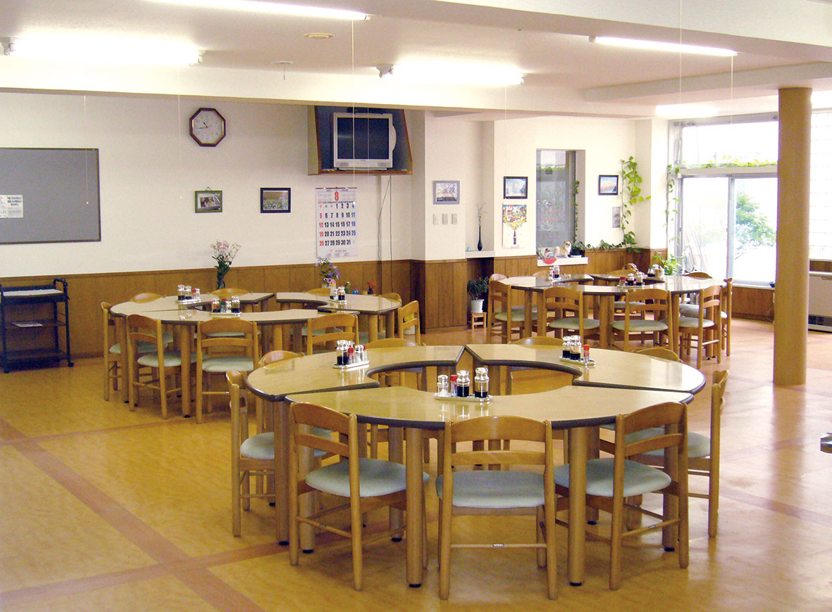 お食事は中庭を望む明るく広い食堂で、皆さんで楽しくお召し上がりください。